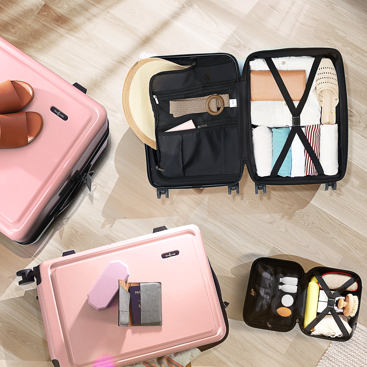 Introducing the ultimate travel companion - the Travel Arim Carry-on Suitcase along with a cosmetics case. This sleek and stylish luggage set is designed with the modern traveler in mind. Crafted from durable materials, it is built to withstand the rigors of travel while keeping your belongings safe and secure. The spacious main compartment is perfect for packing all your essentials, while the convenient cosmetics case allows you to easily access your beauty products on the go. With its compact size, it meets most airline carry-on size restrictions, making it the perfect choice for stress-free travel. The Travel Arim Carry-on suitcase is not only functional but also stylish, with its eye-catching design and premium finish. Upgrade your travel game with this must-have luggage set.